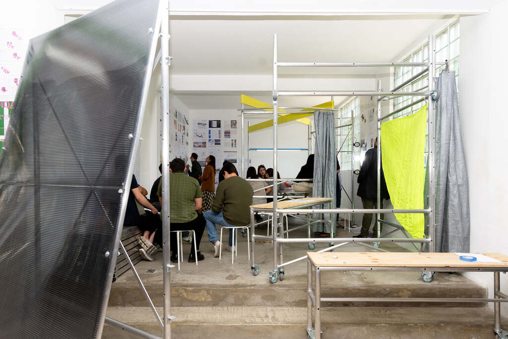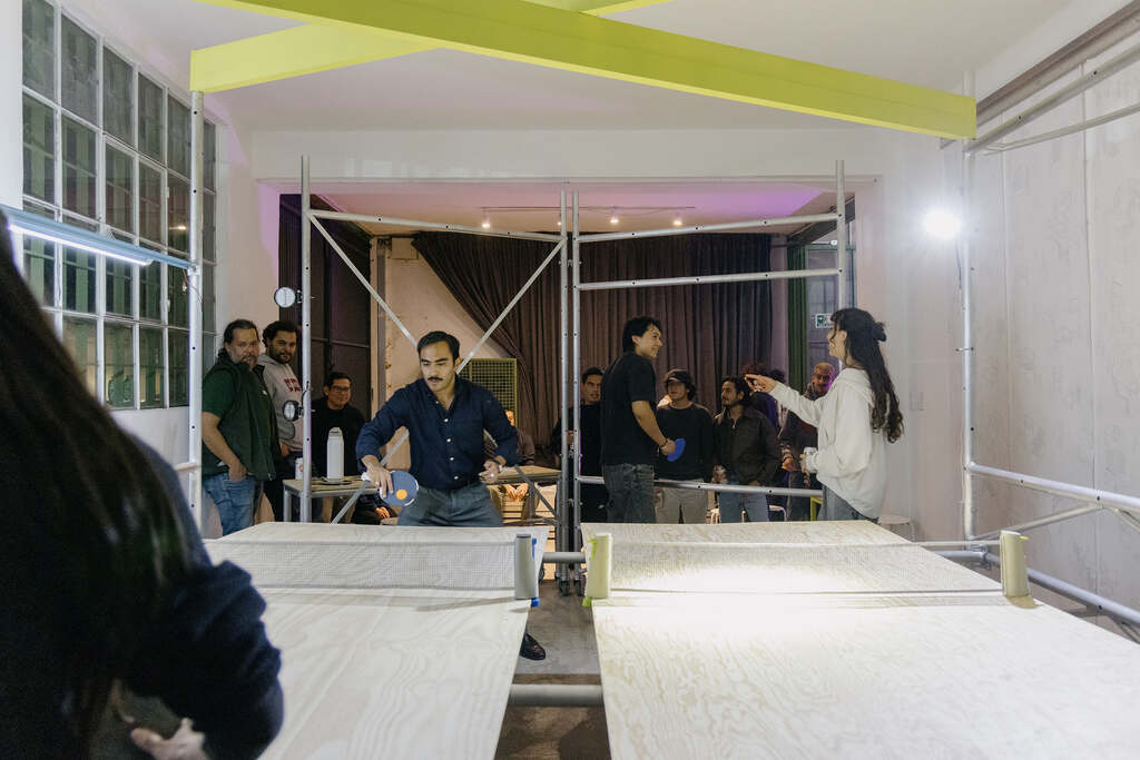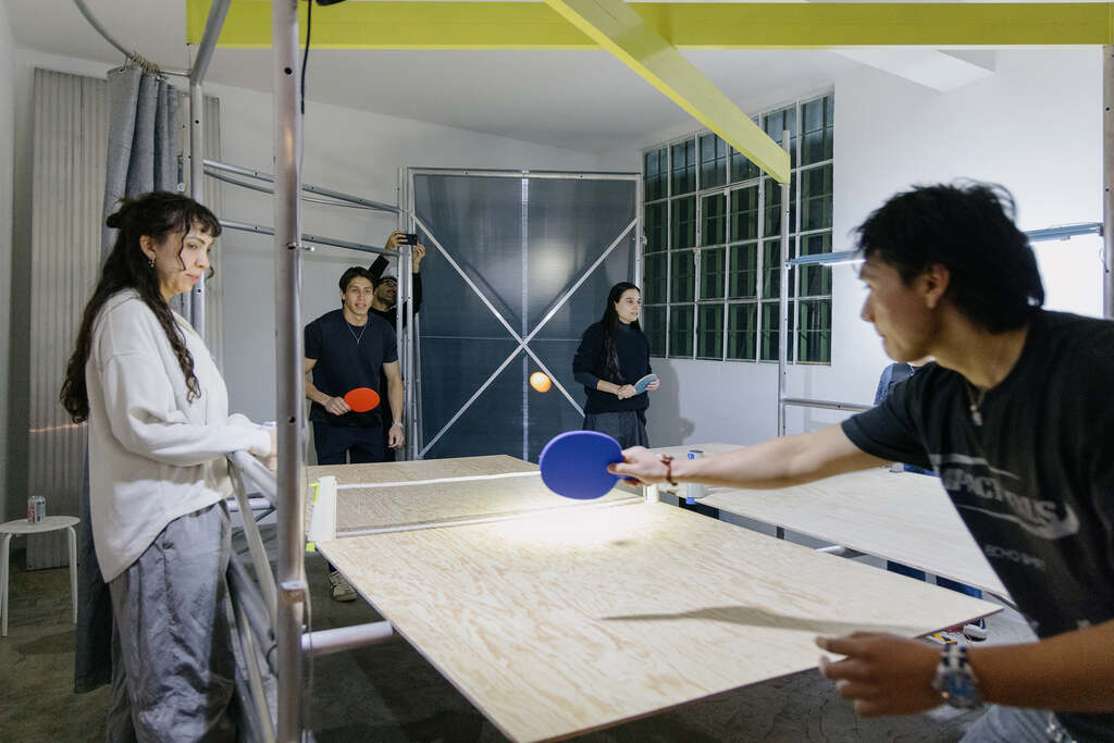 The potentials and limits of Unidad Vecinal are tested through a variety of interactive public programs. Through ten different events, a public audience is invited to collectively occupy the gallery and interact with the installation. “Activations” of the space include the inaugural exhibition talk and opening, two movie nights, a shared dinner, student portfolio workshop, publication launch, open bar with karaoke, pillow talk storytelling, ping-pong tournament, and roundtable closing event. The installation is designed to facilitate or host these events, transforming to accommodate the unique aspects of each program while taking different positions in the gallery as needed.