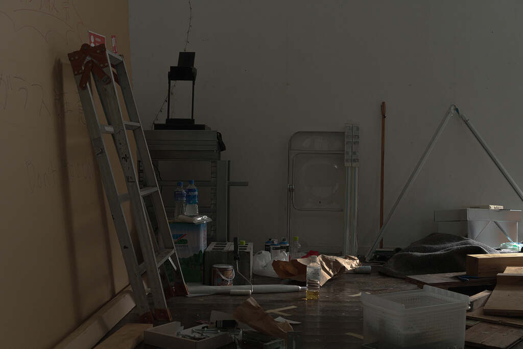 My Robot is a mobile support structure. Operating as part furniture and part infrastructure, the installation acts as a literal and conceptual extension of the Shinjuku White House service spaces. Built out of stacked steel profiles and stored in the on-site closet while not in use, My Robot can be rolled out at specific moments in time: to act as a step ladder during installations in the main gallery space; to provide an additional display surface or pedestal when the existing wall space is insufficient; or to extend public programming onto the side street, where it might function as a beacon, bar table, or DJ booth.