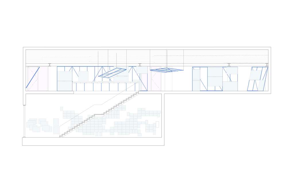 En la segunda planta se exhiben treinta imágenes a gran escala, que ofrecen una experiencia inmersiva, colgadas de marcos de aluminio hechos a la medida que se inclinan y se ladean en el espacio. Las fotografías de Baan se encuentran suspendidas en diversas posiciones de vuelo. Algunas se desprenden ligeramente de las paredes de la galería, mientras que otras flotan en el aire, invitando a los visitantes a adoptar nuevas posiciones y perspectivas para observarlas. Una mesa de exhibición lineal, fijada a lo largo de la barandilla de la escalera central, contiene una serie de imágenes de archivo del Departamento de Transporte de Texas. Las fotografías en blanco y negro, muchas de ellas tomadas por funcionarios anónimos, documentan la construcción de proyectos de infraestructura en Houston desde principios del siglo XX hasta la década de 1970.