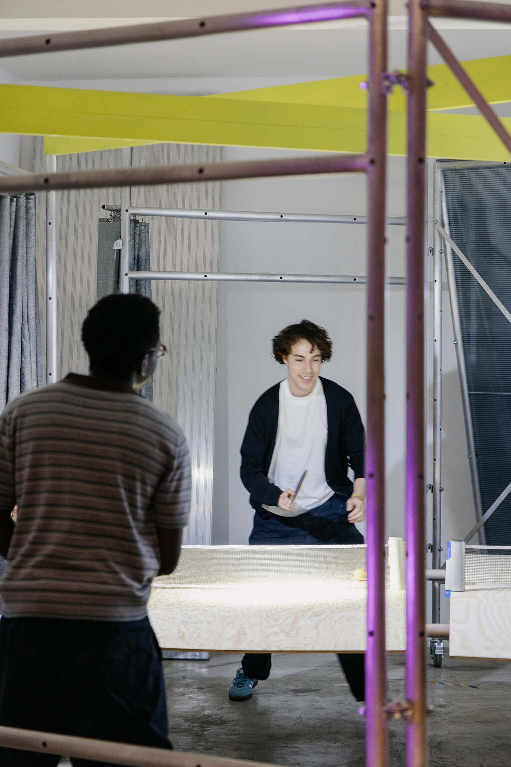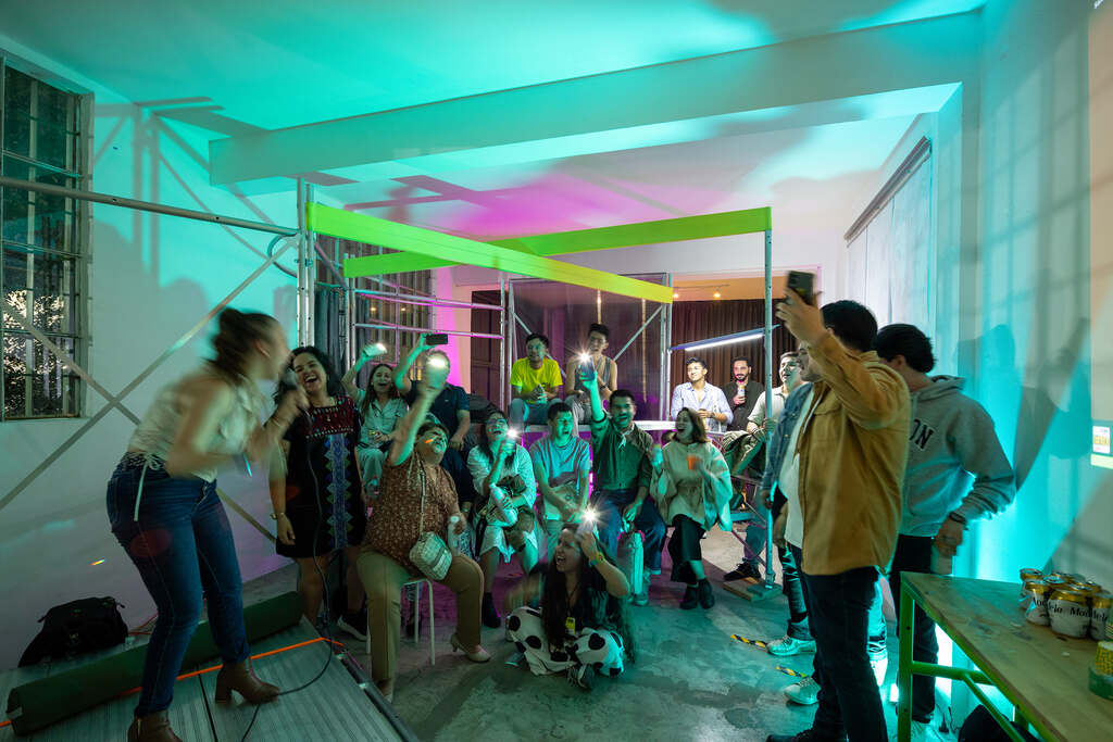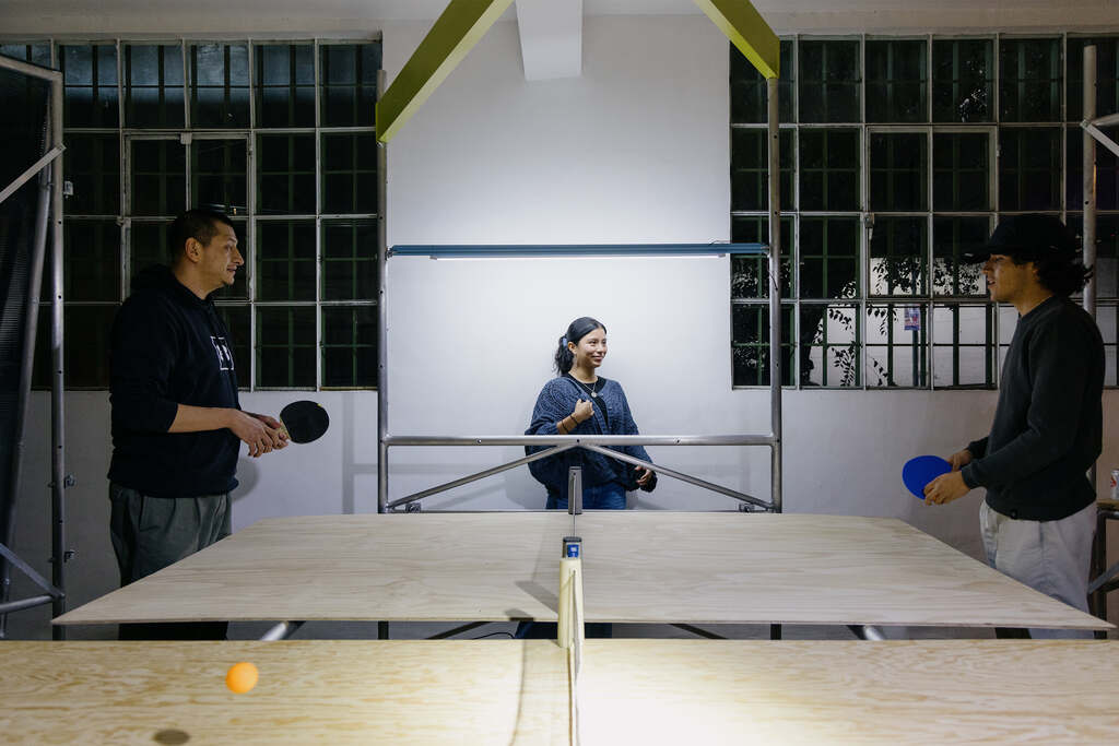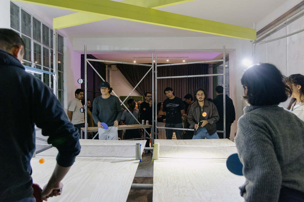 The potentials and limits of Unidad Vecinal are tested through a variety of interactive public programs. Through ten different events, a public audience is invited to collectively occupy the gallery and interact with the installation. “Activations” of the space include the inaugural exhibition talk and opening, two movie nights, a shared dinner, student portfolio workshop, publication launch, open bar with karaoke, pillow talk storytelling, ping-pong tournament, and roundtable closing event. The installation is designed to facilitate or host these events, transforming to accommodate the unique aspects of each program while taking different positions in the gallery as needed.